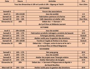 Les cours de qigong et taichi se donnent le dimanche à 10h et le lundi à 19h. N’hésitez pas à nous contacter pour plus d’informations.